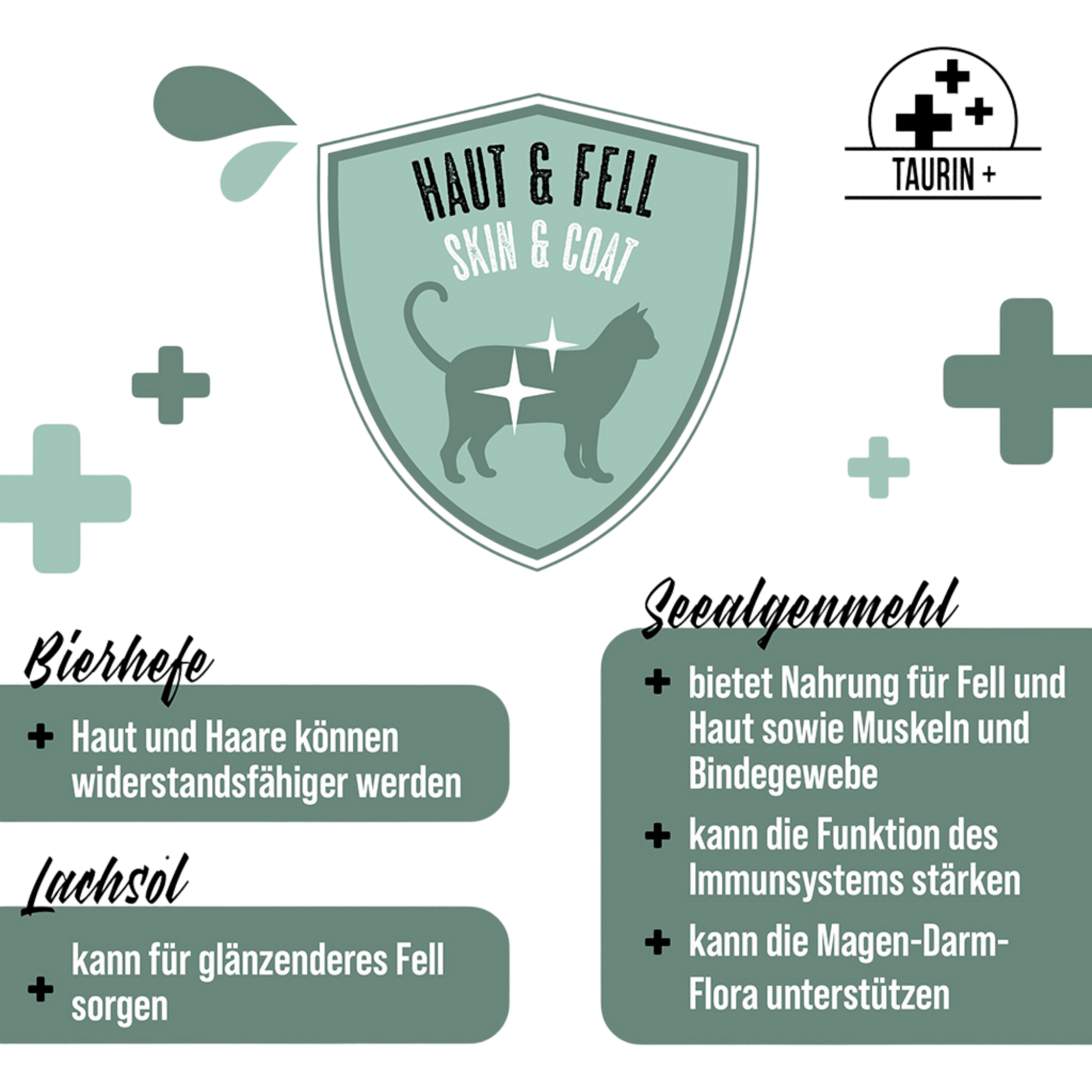 Bierhefe kann die Hautbarriere stärken und zu widerstandsfähigem, gesundem Fell beitragen, während Lachsöl wertvolle Omega-Fettsäuren liefert, die für Glanz und Geschmeidigkeit sorgen können. Seealgenmehl liefert natürliche Nährstoffe für Haut, Fell, Muskeln und Bindegewebe und kann zusätzlich die normale Funktion des Immunsystems sowie die Magen-Darm-Flora unterstützen. Dank des hohen Feuchtigkeitsgehalts unterstützt der Smoothie zudem die tägliche Flüssigkeitsaufnahme.