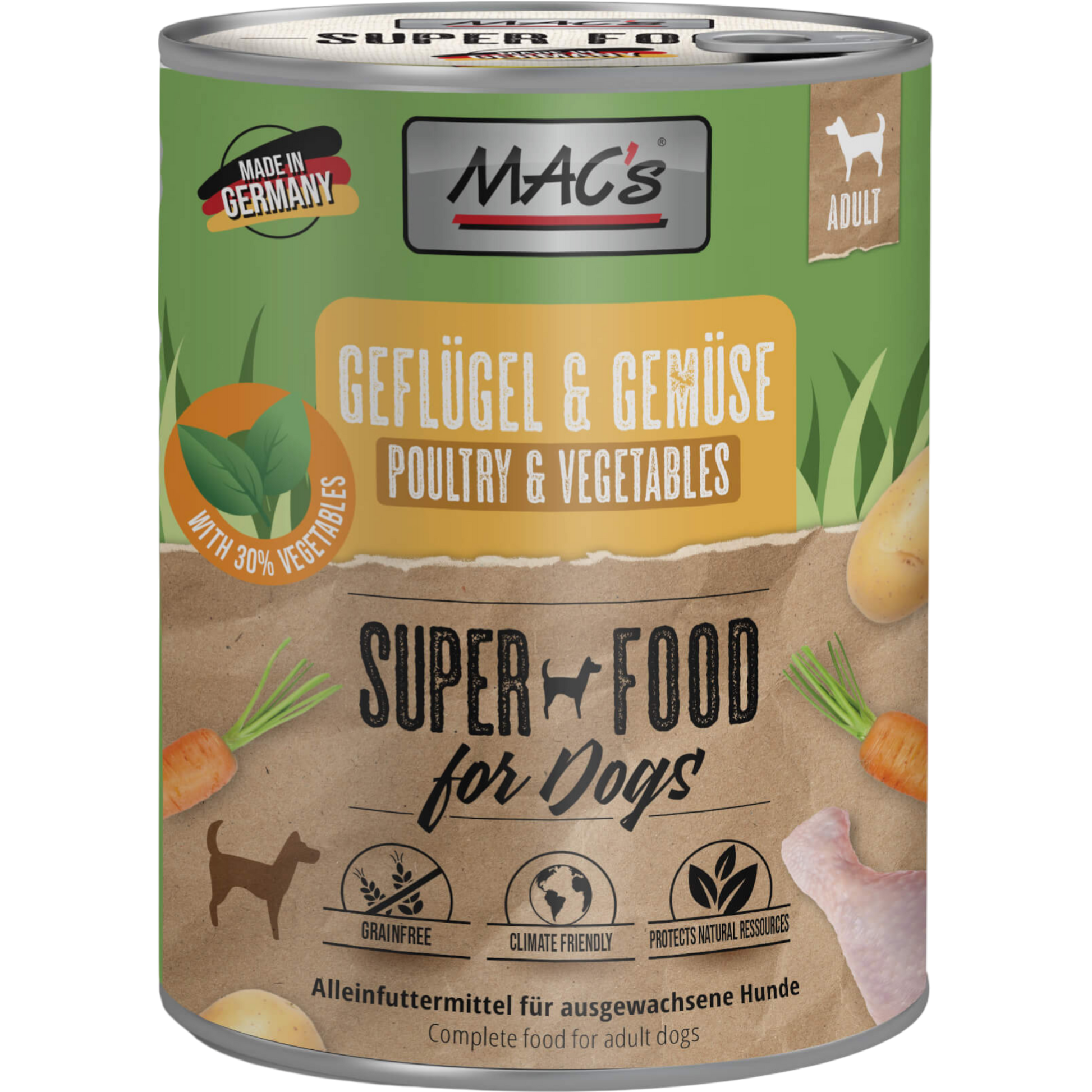 Dieses hochwertige Nassfutter kombiniert frisches Geflügel mit einem ausgewogenen Gemüseanteil aus Karotten und Kartoffeln zu einer bewussten, ressourcenschonenderen Mahlzeit für deinen Hund. Die ausgewogene Rezeptur liefert leicht verdauliche Proteine sowie wertvolle Vitamine und unterstützt Vitalität und Wohlbefinden im Alltag.