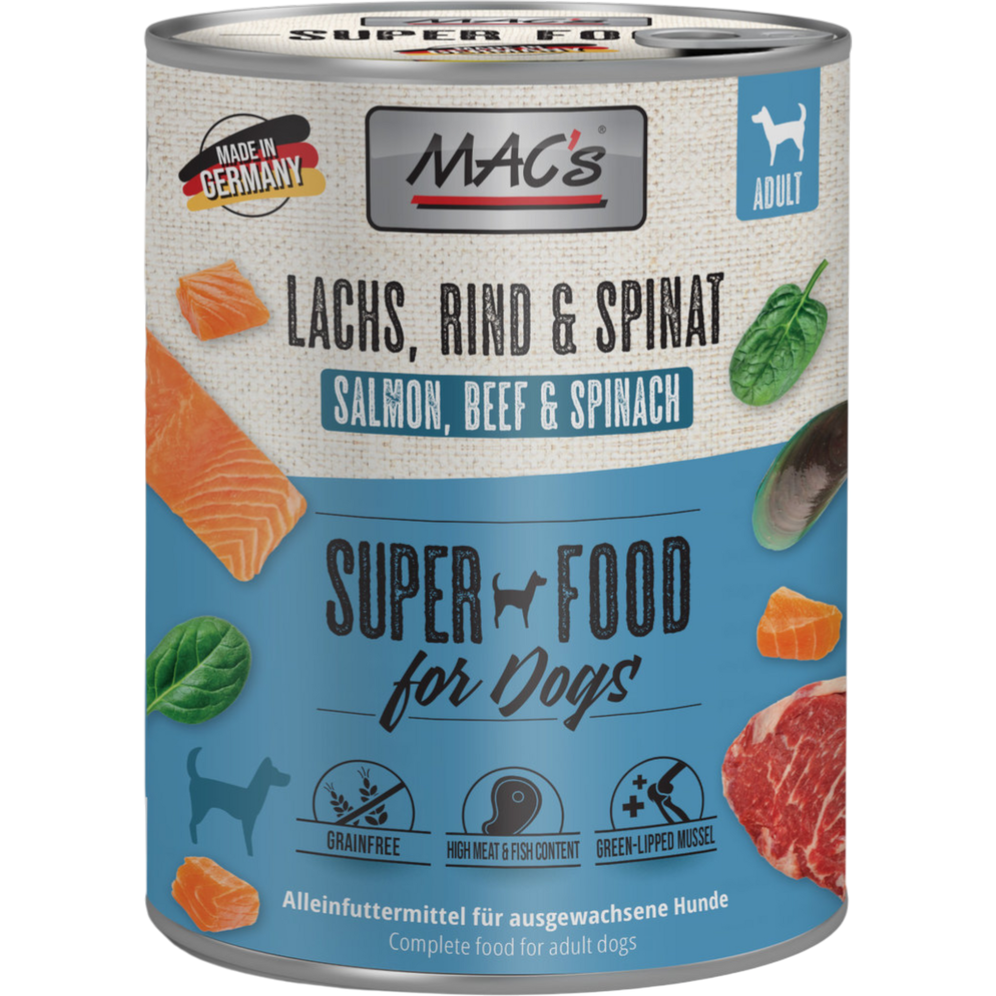 Dieses hochwertige Nassfutter kombiniert kräftiges Rind mit feinem Lachs und nährstoffreichem Spinat zu einer ausgewogenen, besonders schmackhaften Mahlzeit für anspruchsvolle Hunde. Die proteinreiche Rezeptur unterstützt Muskulatur, Vitalität und tägliche Leistungsfähigkeit.