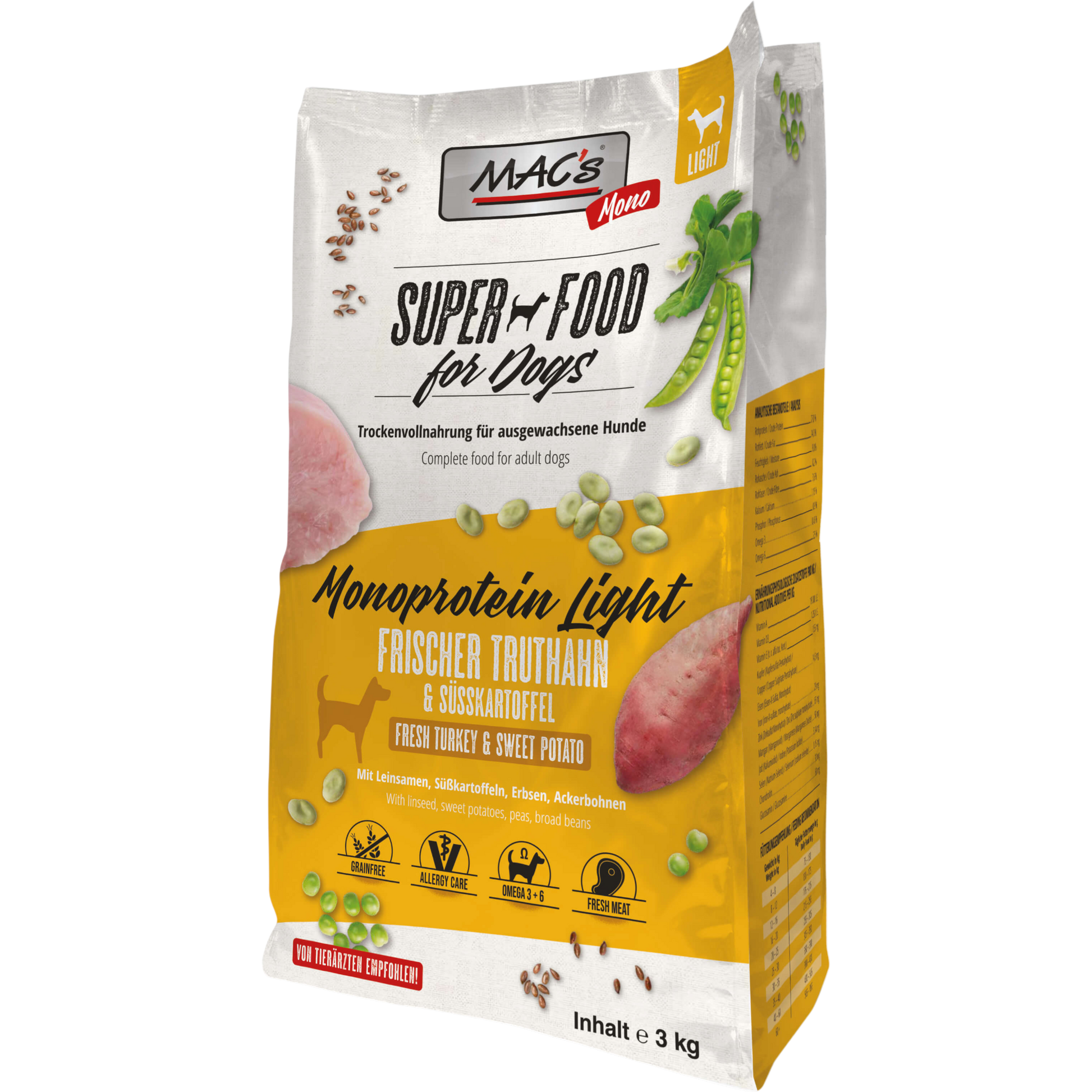 Diese getreidefreie Monoprotein-Rezeptur wurde gezielt für ältere oder übergewichtige Hunde entwickelt. Mit reduziertem Fettgehalt und einer ausgewogenen Nährstoffversorgung unterstützt sie Vitalität und Wohlbefinden – ohne Kompromisse beim Geschmack.