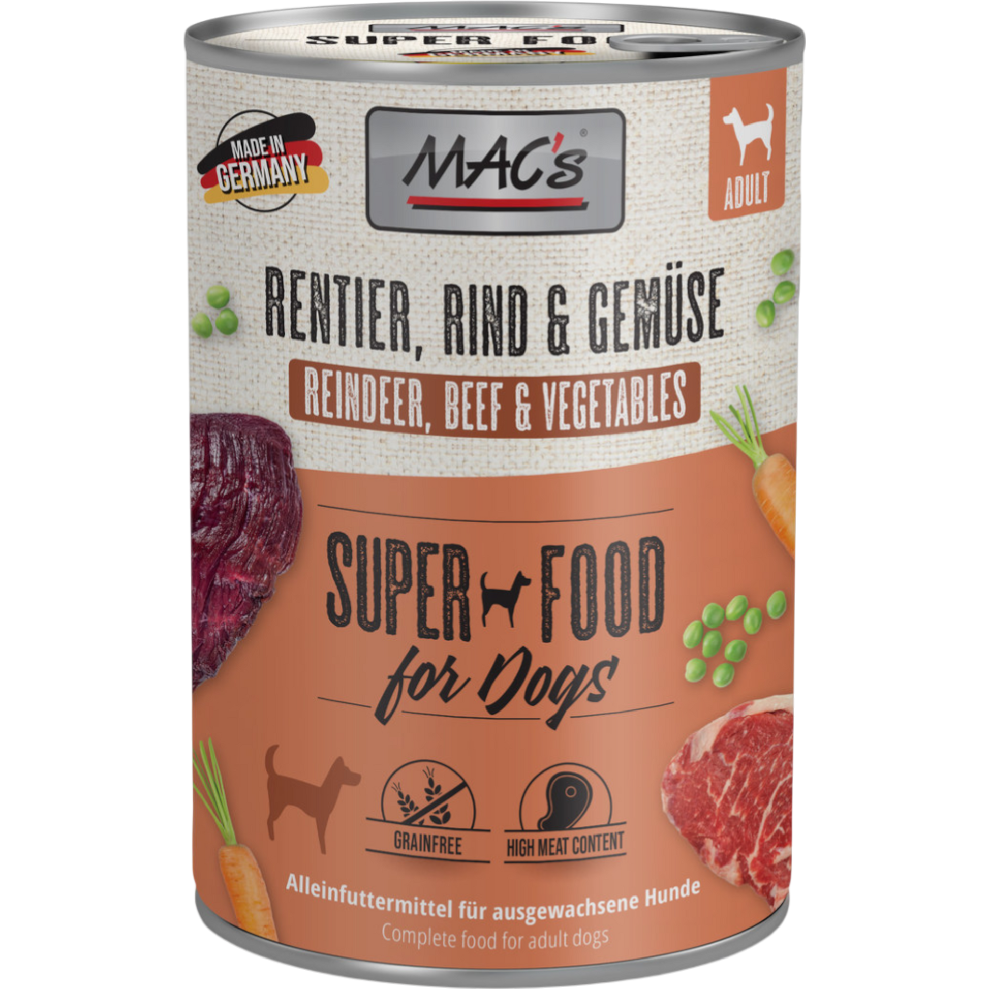 Dieses hochwertige Nassfutter kombiniert kräftiges Rind mit feinem Rentierfleisch und ausgewähltem Gemüse zu einer ausgewogenen, besonders schmackhaften Mahlzeit für anspruchsvolle Hunde. Die proteinreiche Rezeptur unterstützt Muskulatur, Energie und tägliche Vitalität.