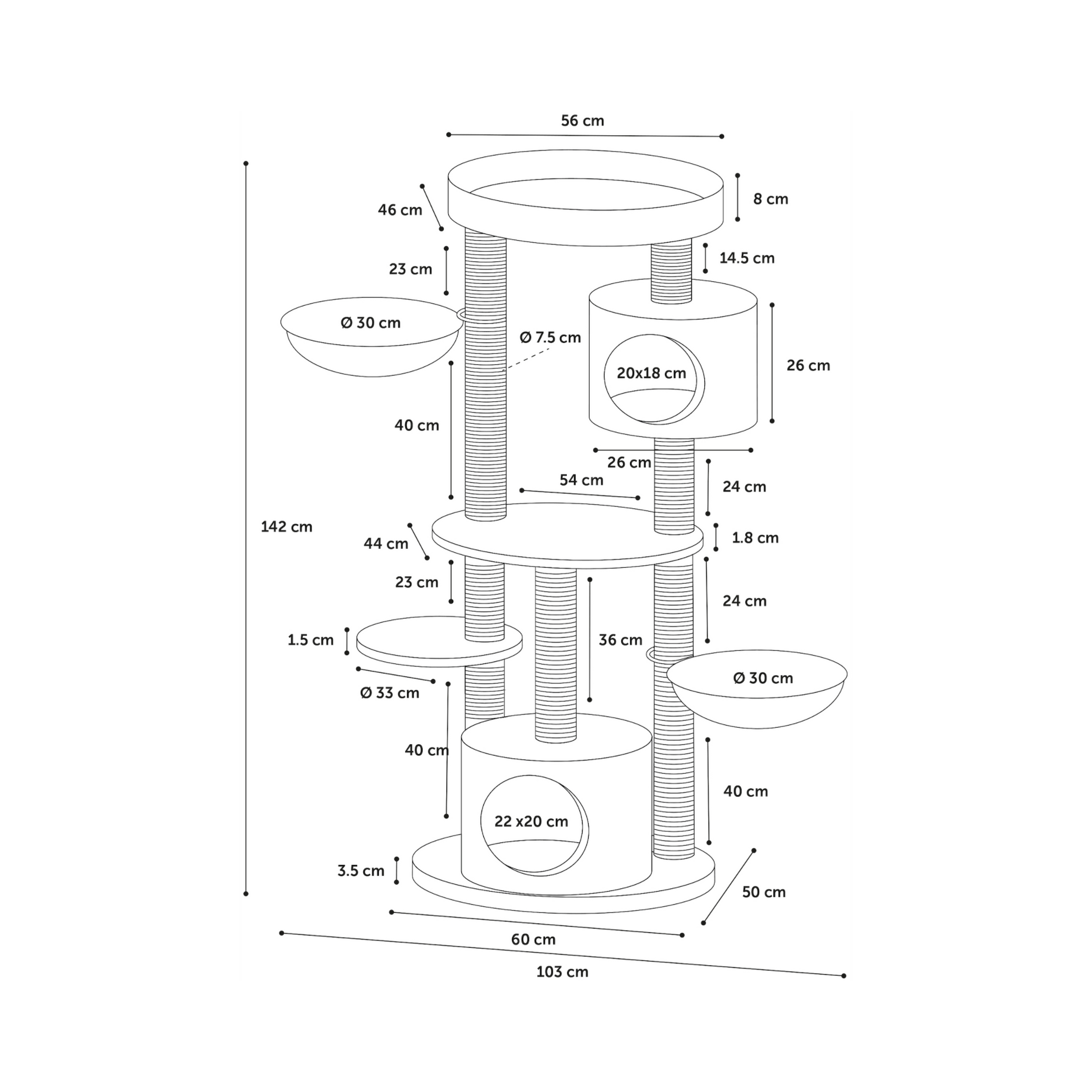 Der Kratzbaum Inga ist ein luxuriöser Rückzugsort für große Stubentiger oder Mehrkatzenhaushalte. Mit robusten Materialien, großzügigem Platzangebot und weichem Komfort schafft er eine perfekte Umgebung zum Klettern, Dösen und Krallenwetzen – ideal für anspruchsvolle Katzen.