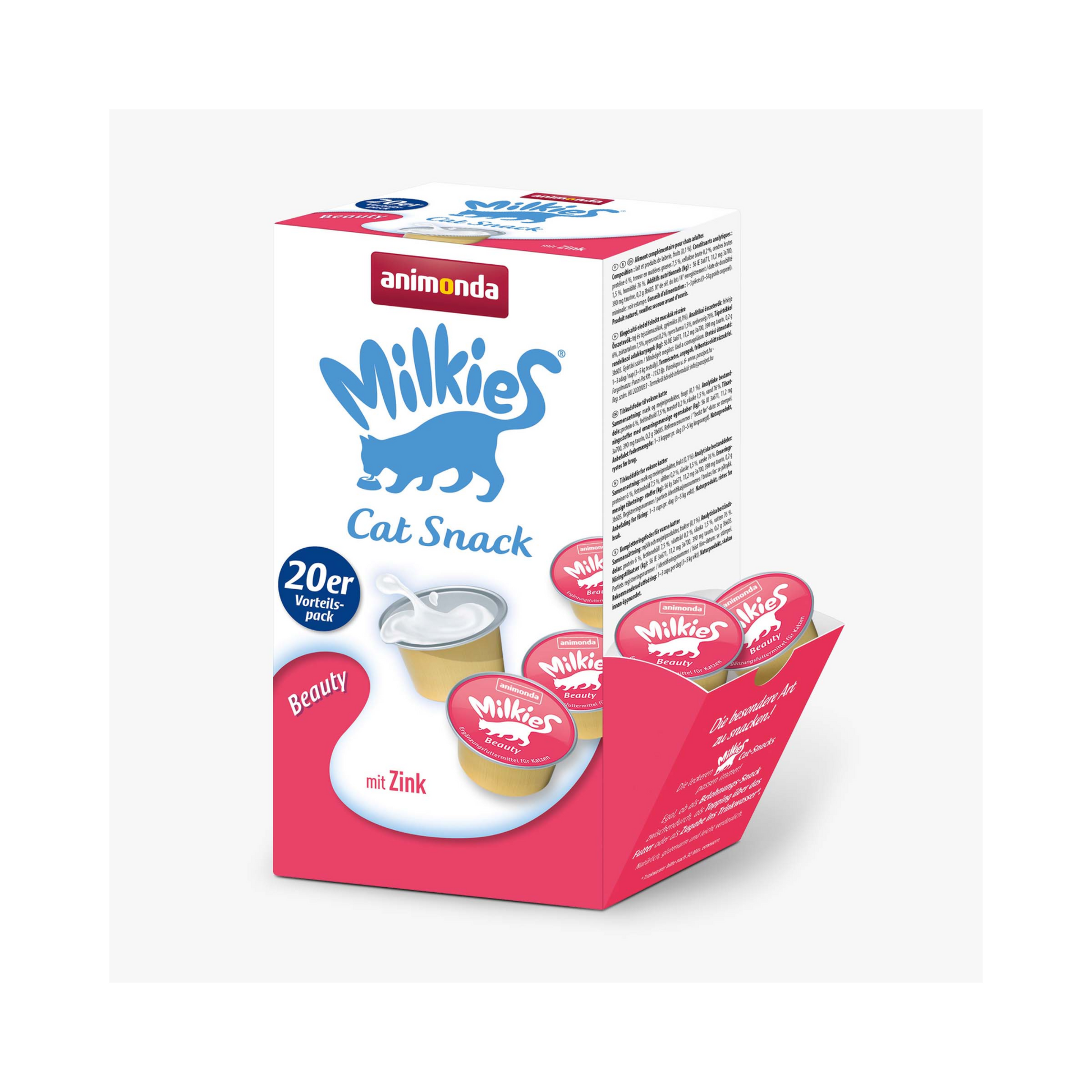 Der Milkies Adult Milchsnack 20er Beauty bietet einen großzügigen Vorrat an köstlichen Milch-Cups, die sofort einsatzbereit sind und Katzen zuverlässig begeistern. Mit Früchten und wertvollem Zink setzt diese Variante nicht nur auf Geschmack, sondern unterstützt zugleich Haut- und Fellqualität – ideal für Stubentiger, die glänzend durch den Alltag gehen sollen.