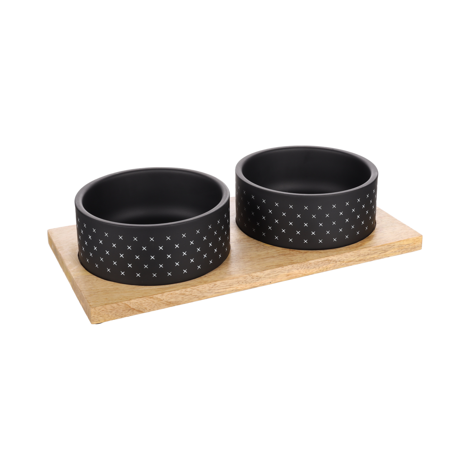 Dieses hochwertige Duo Dinner Set vereint Funktionalität und Design. Die 2 herausnehmbaren Edelstahlnäpfe sind in einer edlen Holzhalterung platziert und sorgen für eine stilvolle Fütterung. Durch die doppelte Wand bleibt das Futter oder Wasser länger kühl, während der rutschfeste Boden für zusätzliche Stabilität sorgt.