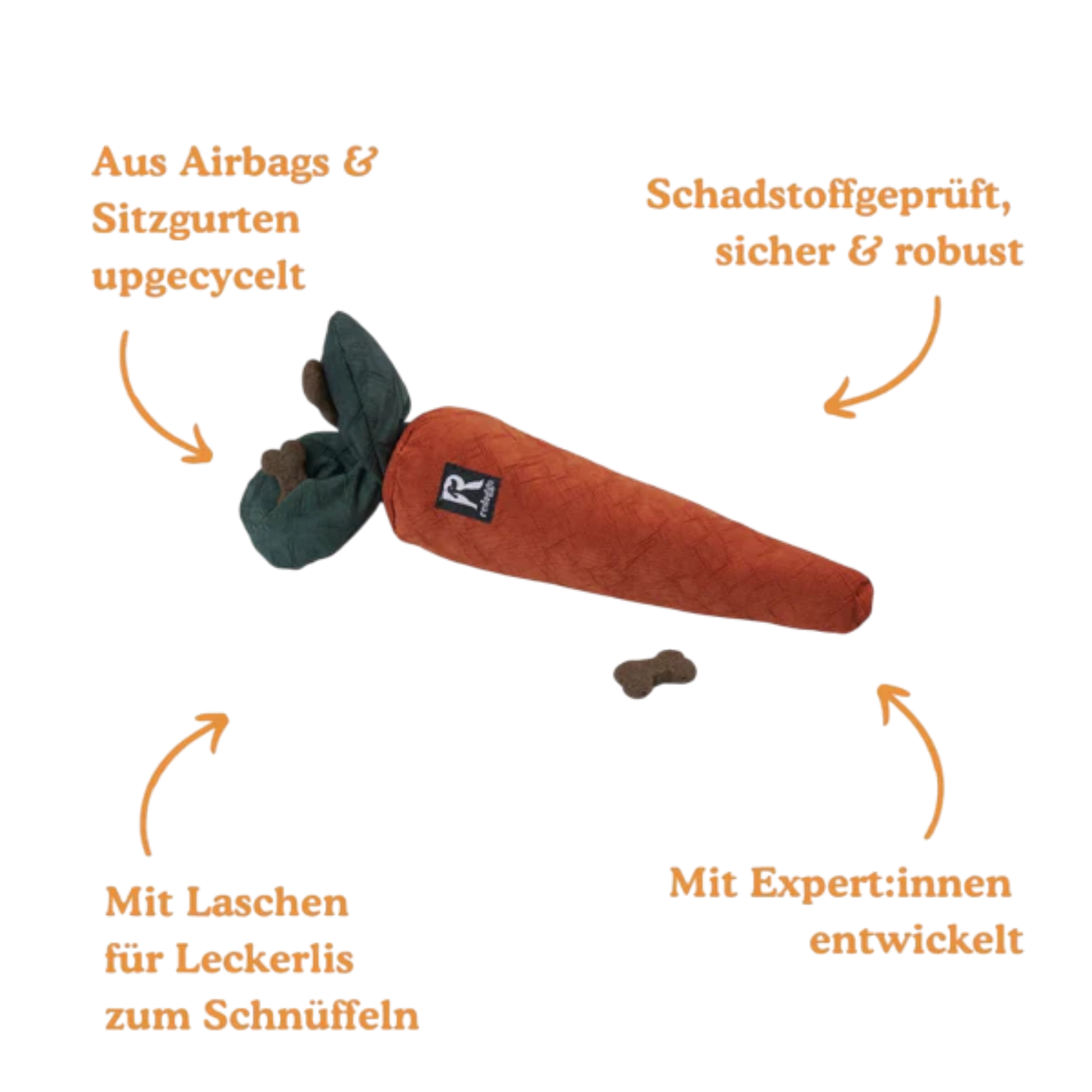 Kein Hundespielzeug ist unzerstörbar. Nutze die Karotte aktiv und gemeinsam mit deinem Hund. So bleibt sie langfristig einsatzbereit, sicher und bietet kontinuierlich wertvolle mentale Auslastung.