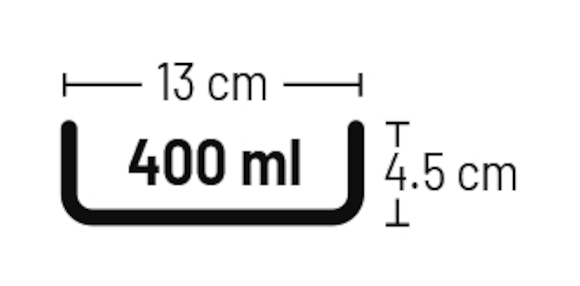 - S: 13cm L x 13cm B x 4.5cm H - 400ml - ∅ 13cm