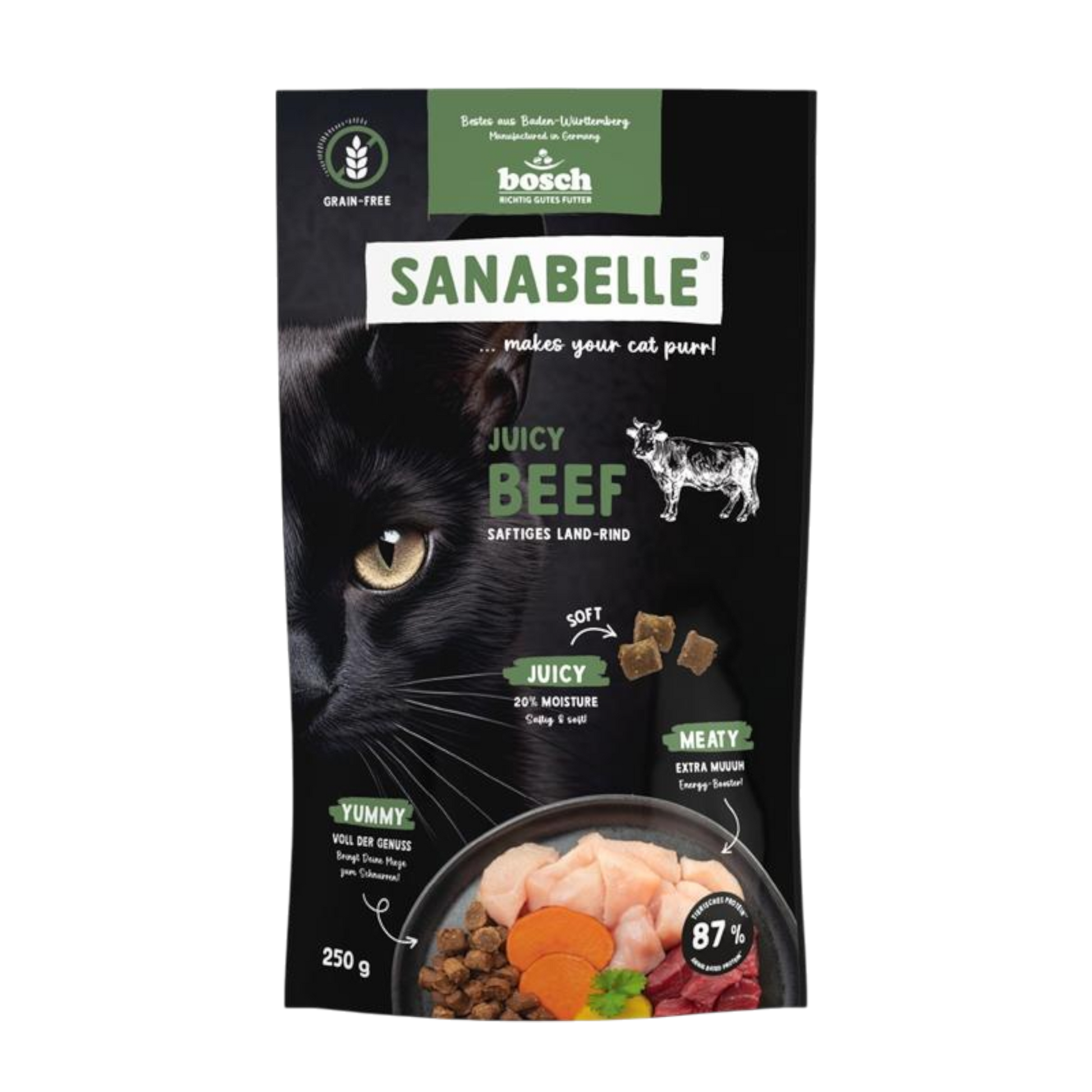 Sanabelle Juicy Rind & Huhn bietet erwachsenen Katzen eine rundum ausgewogene Vollnahrung mit intensiven Fleischaromen und besonders weichen, soften Kroketten. Die Kombination aus frischem Land-Rind und zartem Hühnchenfleisch liefert hochwertige Proteine sowie eine optimale Versorgung mit allen wichtigen Nährstoffen. Diese Rezeptur ist nicht nur bedarfsgerecht, sondern auch besonders schmackhaft – ideal für Katzen, die weiches Futter lieben oder sensibler kauen.