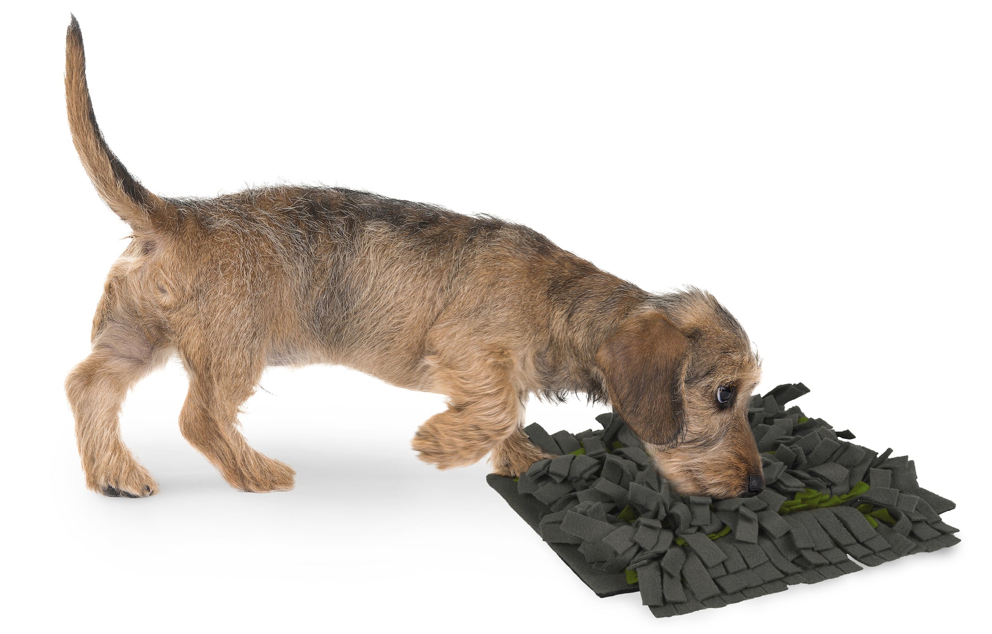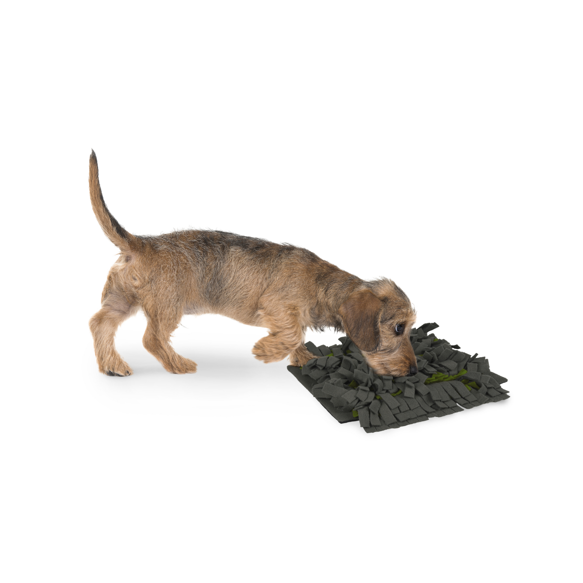 Der Schnüffelteppich Amigo ist das ideale Spiel- und Futterzubehör, um das Fressen und das Suchverhalten Ihres Hundes auf natürliche Weise zu fördern. Der Teppich besteht aus hochwertigem Textil und verfügt über eine herausnehmbare Bodenplatte aus Kunststoff, die für zusätzliche Stabilität sorgt. Mit seiner speziellen Struktur ermöglicht der Teppich das Verstecken von Trockenfutter oder Snacks, sodass Ihr Hund sich seine Mahlzeit "erarbeiten" muss – perfekt, um Schlingen zu verhindern und die Fütterung abwechslungsreicher zu gestalten.