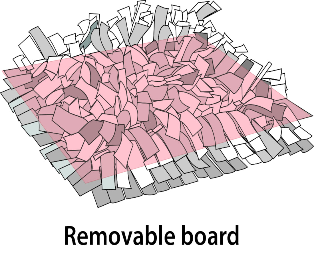 Dank des Anti-Rutsch-Designs bleibt der Schnüffelteppich sicher an seinem Platz, auch wenn Ihr Hund darin schnüffelt und sucht. Der abnehmbare Bezug mit Reißverschluss lässt sich einfach abnehmen und bei 30°C waschen, was eine einfache Pflege garantiert.