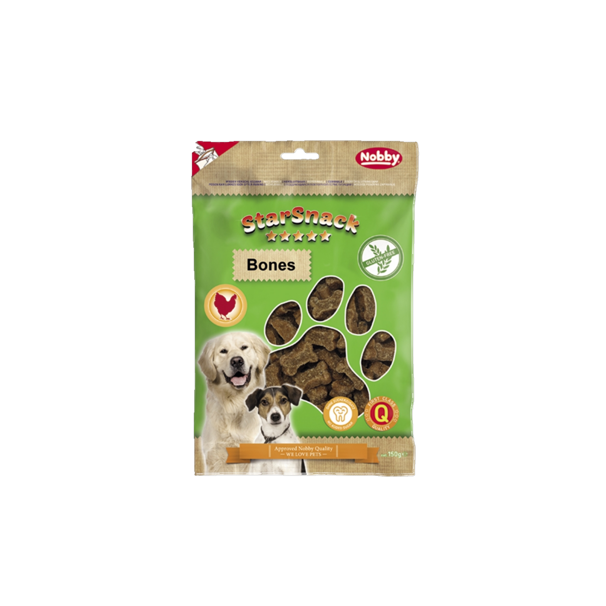 Verpackt im praktischen, wiederverschließbaren 150 g-Beutel, bleiben die Bones lange frisch – ideal für unterwegs oder zu Hause.