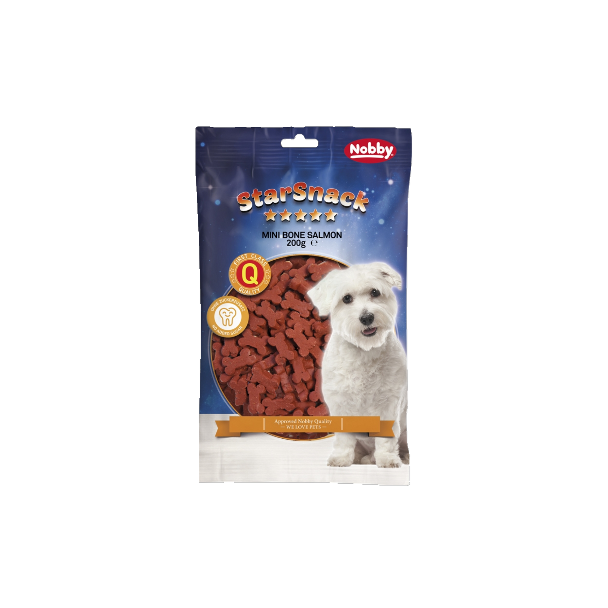Die StarSnack Mini Bones "Salmon" sind köstliche, weiche Leckerbissen mit einem Extra an wertvollem Lachsöl, das nicht nur herrlich schmeckt, sondern auch Haut und Fell deines Hundes unterstützt. In Form kleiner, praktischer Knochen sind sie die perfekte Belohnung beim Training oder einfach als liebevolle Aufmerksamkeit zwischendurch.