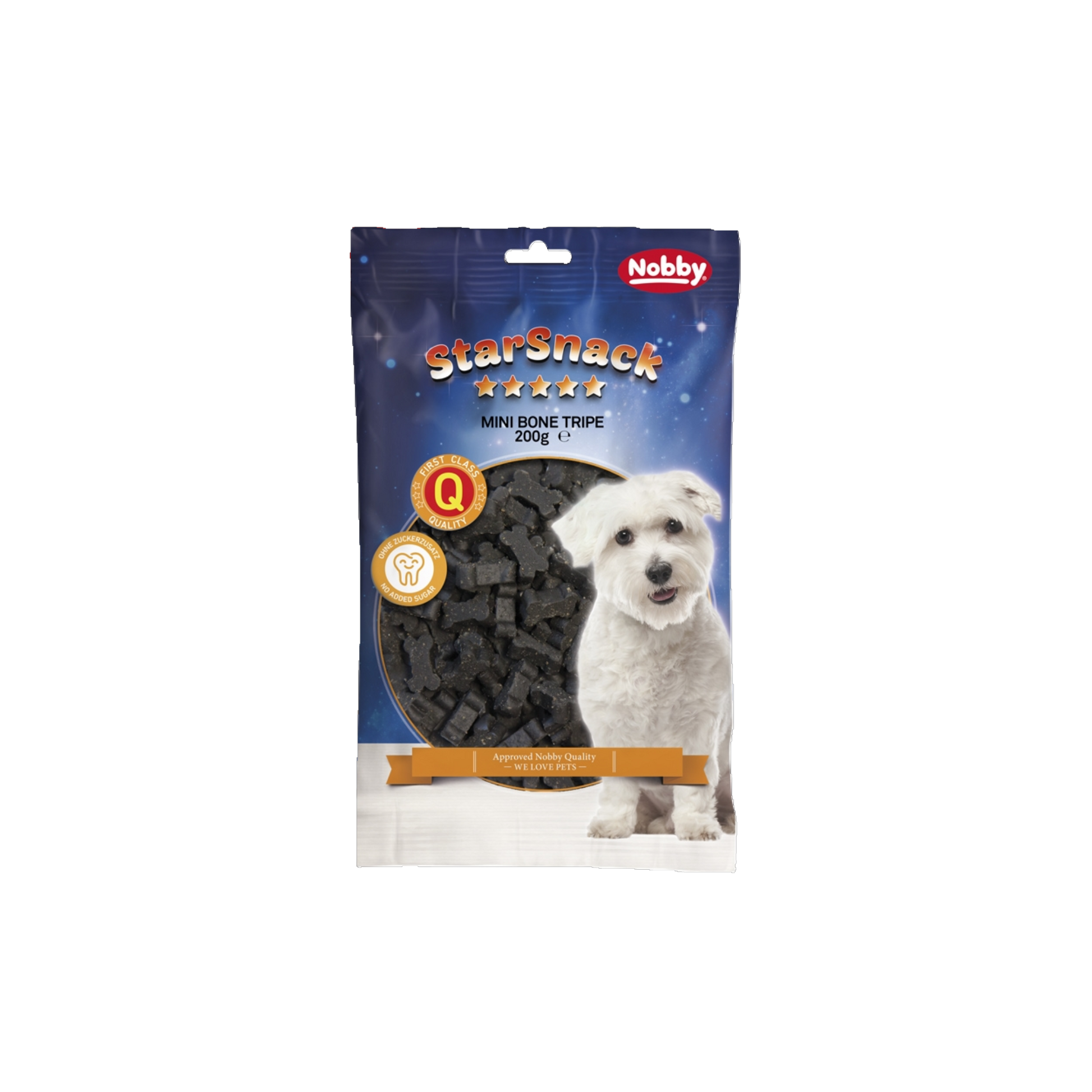 Die StarSnack Mini Bones "Tripe" sind der ideale Snack für das tägliche Training, die Erziehung oder einfach als kleine, schmackhafte Aufmerksamkeit für zwischendurch. Dank ihrer kompakten Knochenform lassen sich die Mini-Snacks leicht portionieren und sind besonders beliebt bei kleinen bis mittelgroßen Hunderassen.