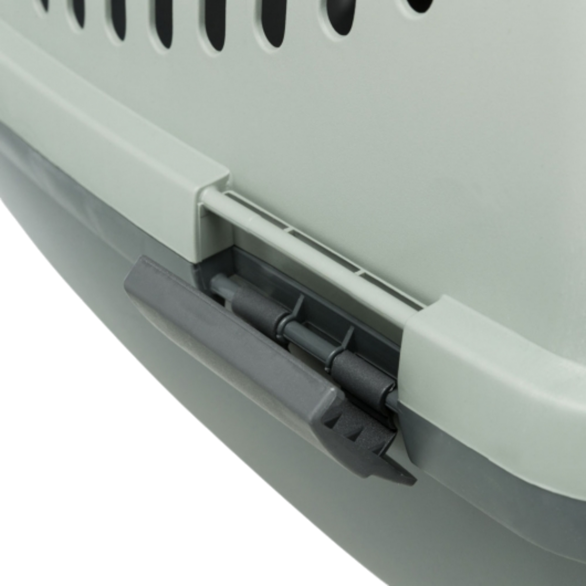 Das moderne Farbdesign in Anthrazit und Grau-Grün verleiht der Transportbox eine zeitlose, hochwertige Optik. Gleichzeitig sorgt die stabile Konstruktion für Sicherheit und Geborgenheit während des Transports.