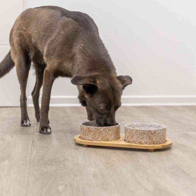 Verwöhnen Sie Ihren Vierbeiner mit diesem hochwertigen Doppelnapf-Set, das Funktionalität und Stil perfekt vereint! Die Kombination aus robustem Bambushalter und zwei hochwertigen Keramiknäpfen sorgt für ein langlebiges und elegantes Fress- und Trinkerlebnis.
