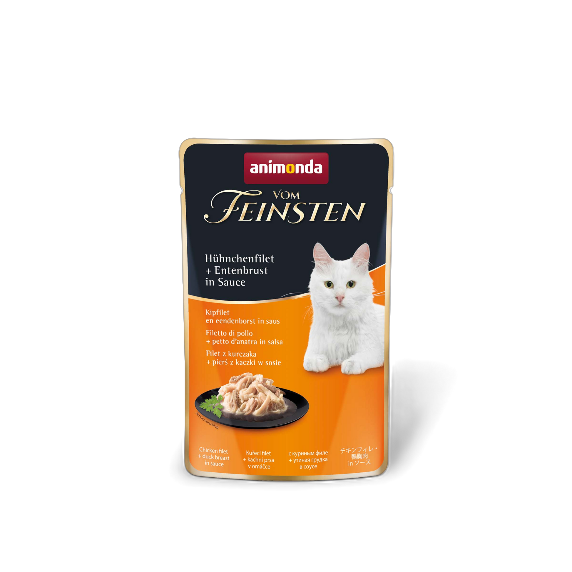 Vom Feinsten Adult in Sauce mit Hühnchenfilet & Entenbrust ist die richtige Wahl für Katzenhalter, die Abwechslung, Premiumqualität und kompromisslosen Geschmack suchen – ein Produkt, das Genuss, Qualität und Markenstärke zuverlässig vereint.