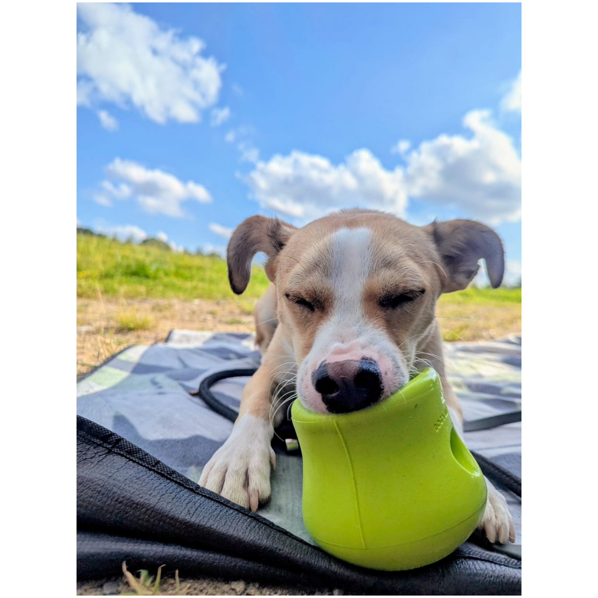 Die Form ist super durchdacht: Er lässt sich perfekt mit den Pfoten festhalten, rollt aber nicht ständig davon wie ein Ball – ideal also auch fürs entspannte Snacken vor dem Van oder auf der Wiese. Apropos Wiese: Die Farbe ist schön auffällig, sodass er nicht gleich im Gras verschwindet, falls er mal "verschleppt" wird.